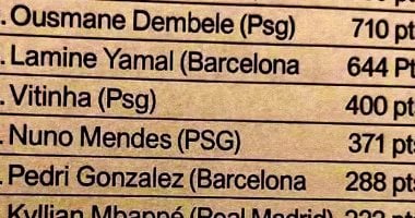 في سياق الترشيحات، ضمت قائمة العشرة الأوائل للكرة الذهبية للعام 2025 أسماءً لامعة من بينهم الفرنسي عثمان ديمبيلي من باريس سان جيرمان، والإسباني لامين يامال من برشلونة، والبرتغالي فيتينيا من باريس سان جيرمان، والبرازيلي رافينيا من برشلونة، بالإضافة إلى محمد صلاح من ليفربول، والفرنسي ديزيري دوي وجورجي خفيتشا كفاراتسخيليا وكيلين مبابي من باريس سان جيرمان، والبرتغالي نونو مينديز، والمغربي أشرف حكيمي.