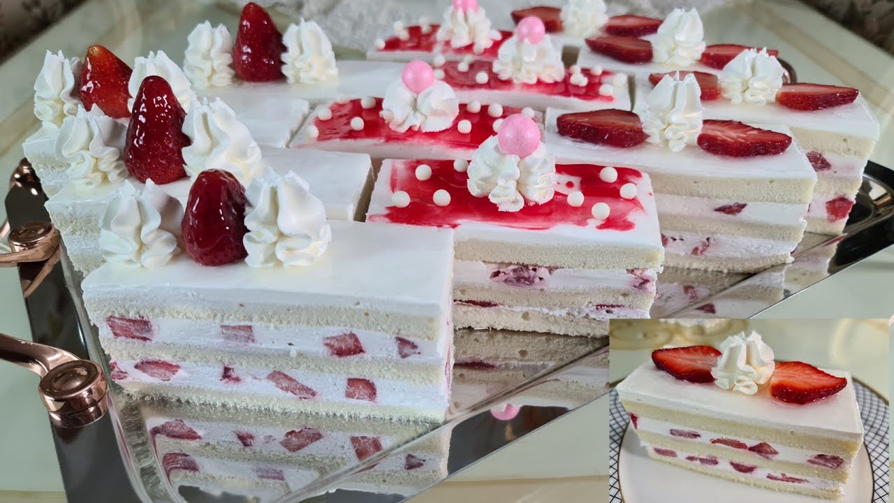 - عندما ينضج الكيك يتم إضافة قطعه لعدة طبقات ثم نضع الكريمة بين تلك الطبقات ونزين بالمتاح.